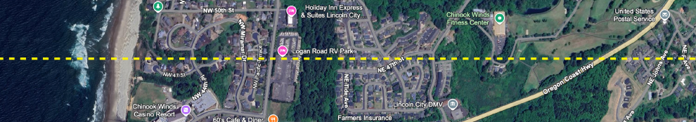 So where exactly is the 45th parallel in Lincoln City?