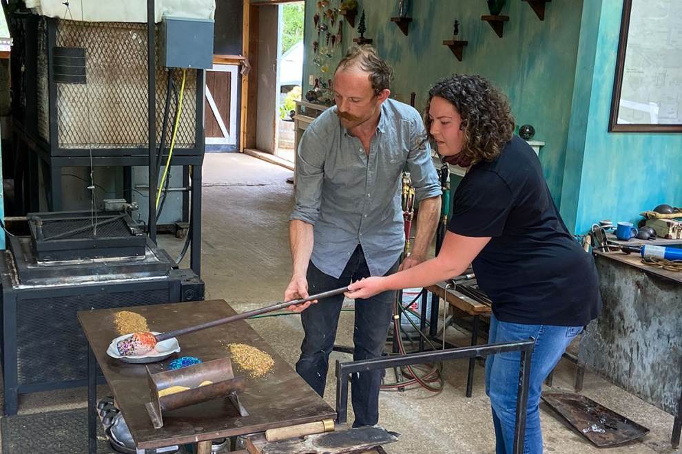 Aaron and Megan's shared passion for glass not only brought them together as a couple but propelled them to create ThornMeadow Glassworks, on their 17-acre farm just outside of Lincoln City. They built the Glass Studio from the ground up. In 2018, the studio opened with the goal of sharing their passion for glass art with the community as well as exploring their own artistic expressions. They also hope to pass their love of glass to their 3 boys Ryder, Leviathan, and Apollo.