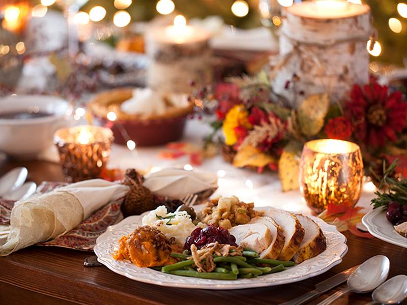 Roasted turkey breast, served with yukon gold mashed potatoes and gravy, apple cornbread stuffing, candied yams, green bean casserole and a warm dinner roll